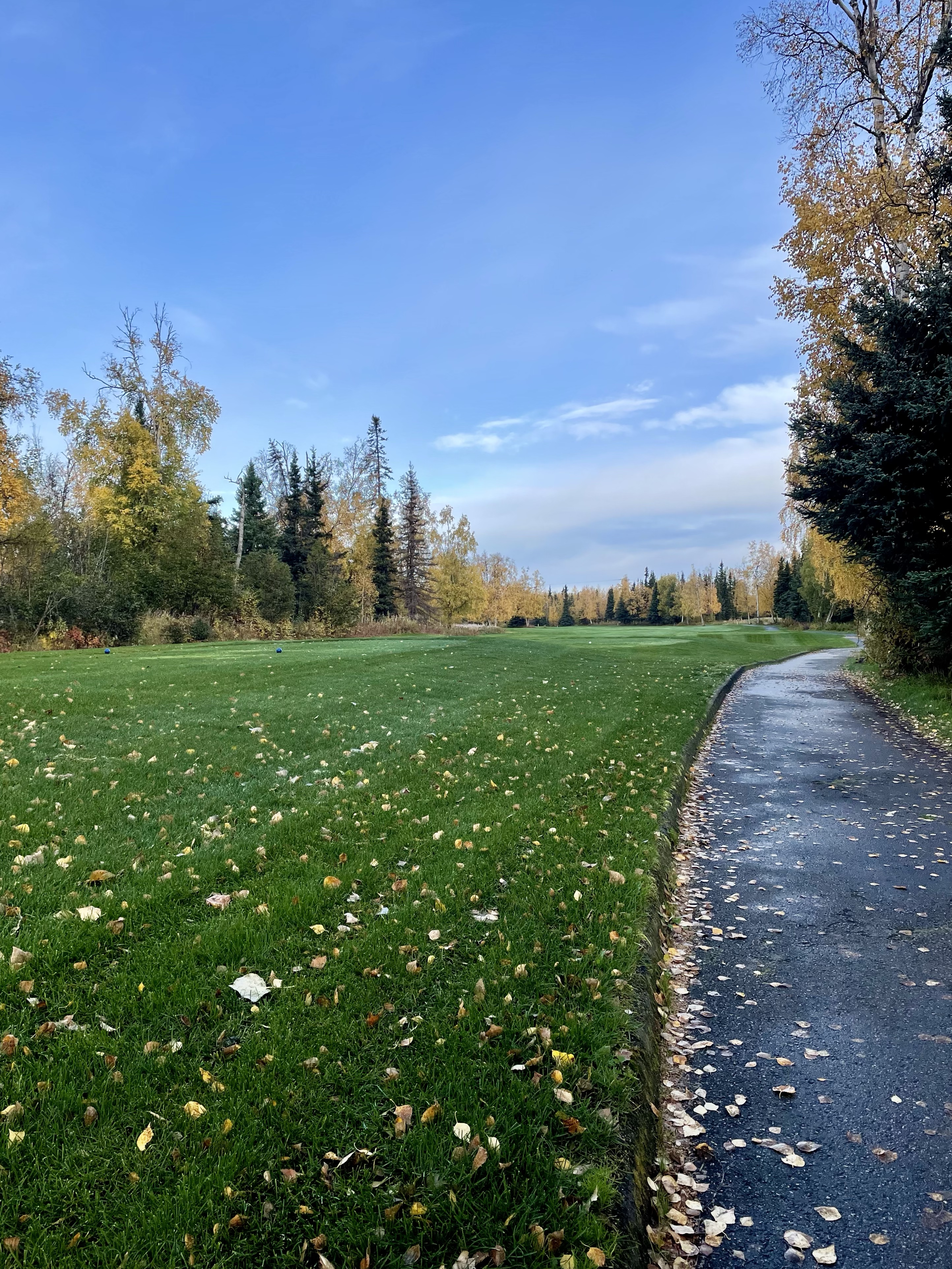 Today we visited Moose Run Golf Course for 18 holes of fun (for Taylor). I was the designated golf cart driver, photographer and official scorekeeper while Taylor shanked his golf balls into the woods. Even though I was slowly becoming an icicle, the scenery was absolutely beautiful.