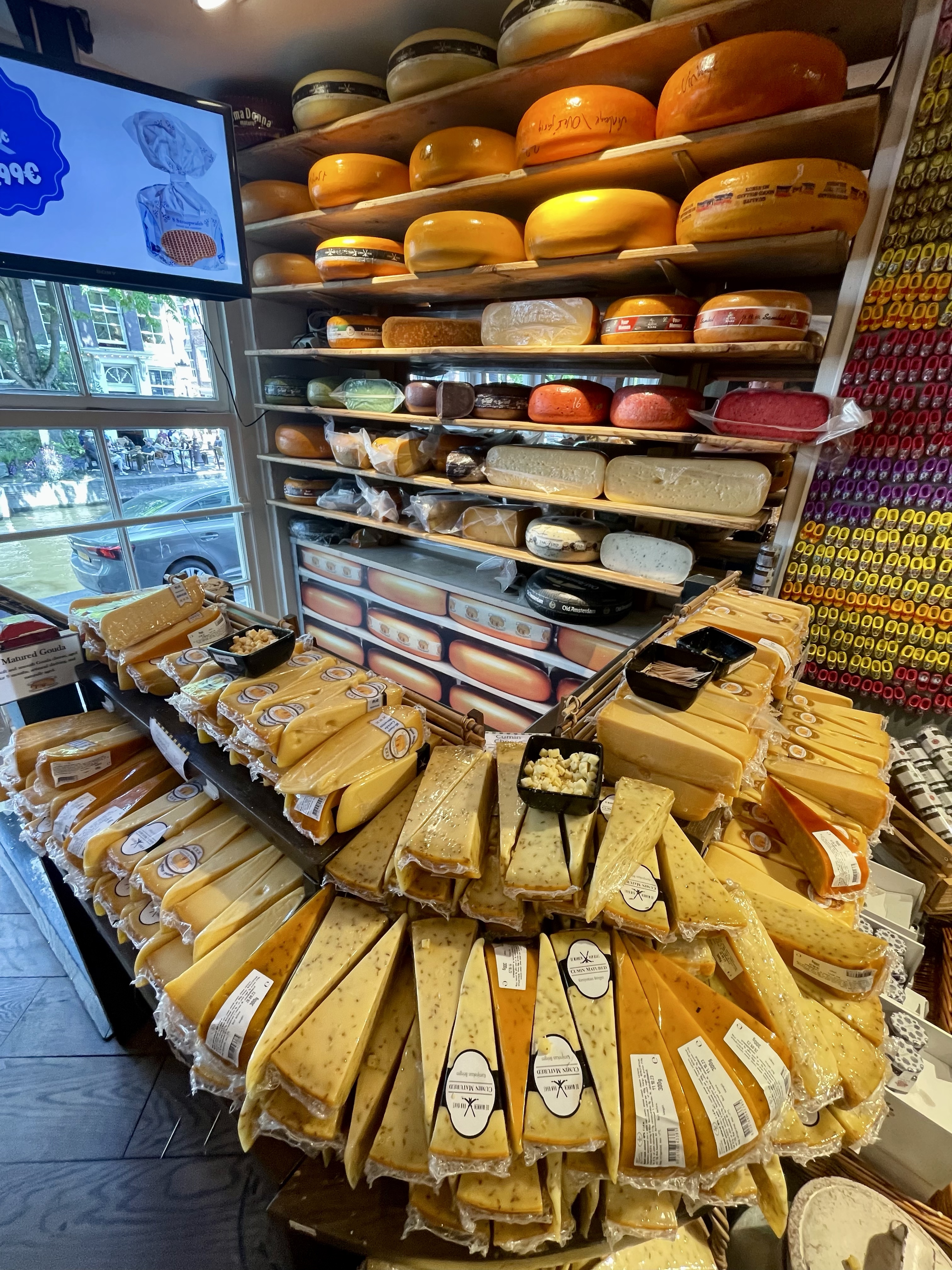 Our favorite stop of the day: Musée du Fromage! For you English speakers, the cheese museum! We sampled aged Gouda, bunker, garlic cheese, chili cheese, jalapeño cheese, old goat cheese, pesto cheese, and pepper cheese to name a few. We walked out with a block of aged Gouda and a pack of cheese biscuits!