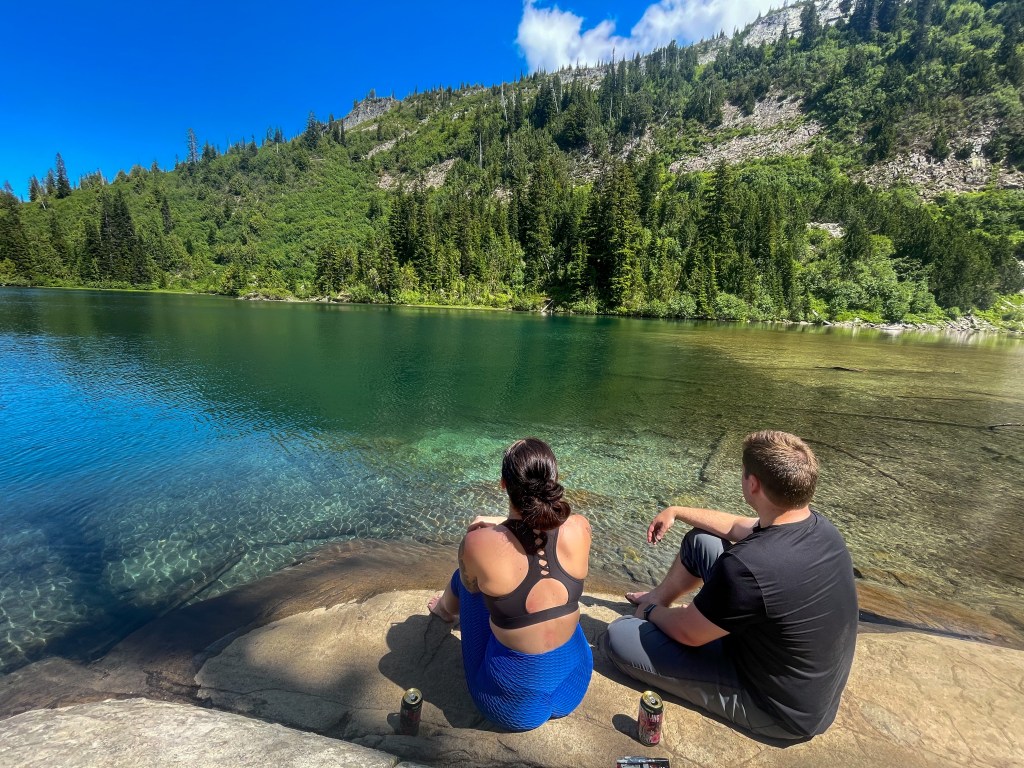 Next stop: Snow Lake. The trail took us to a bright blue lake surrounded by lush, green trees. We picked a spot on the rocks to have lunch and dip our toes in the icy water. This was the ONE trail we forgot to reapply bug spray and we were literally eaten alive. Oops!