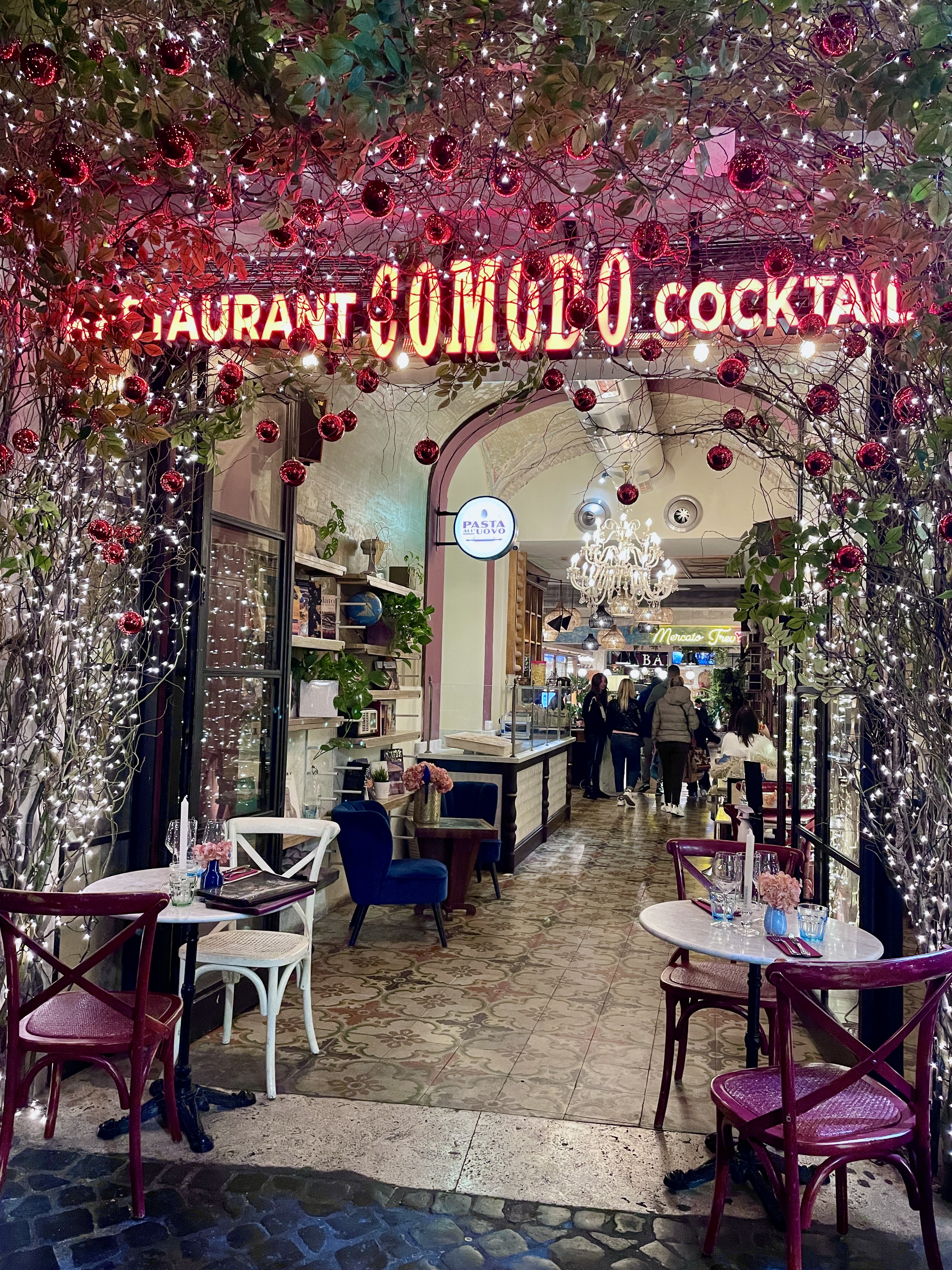 Comodo Mercato Trevi is located around the corner from the Trevi Fountain. This 5-in-1 market style restaurant offers everything including Roman cuisine, pizza, fresh sushi and freshly baked bread. Previously a carriage shed, printing house and garage, the building’s open-area architecture and high ceilings offer a warm, relaxed atmosphere.