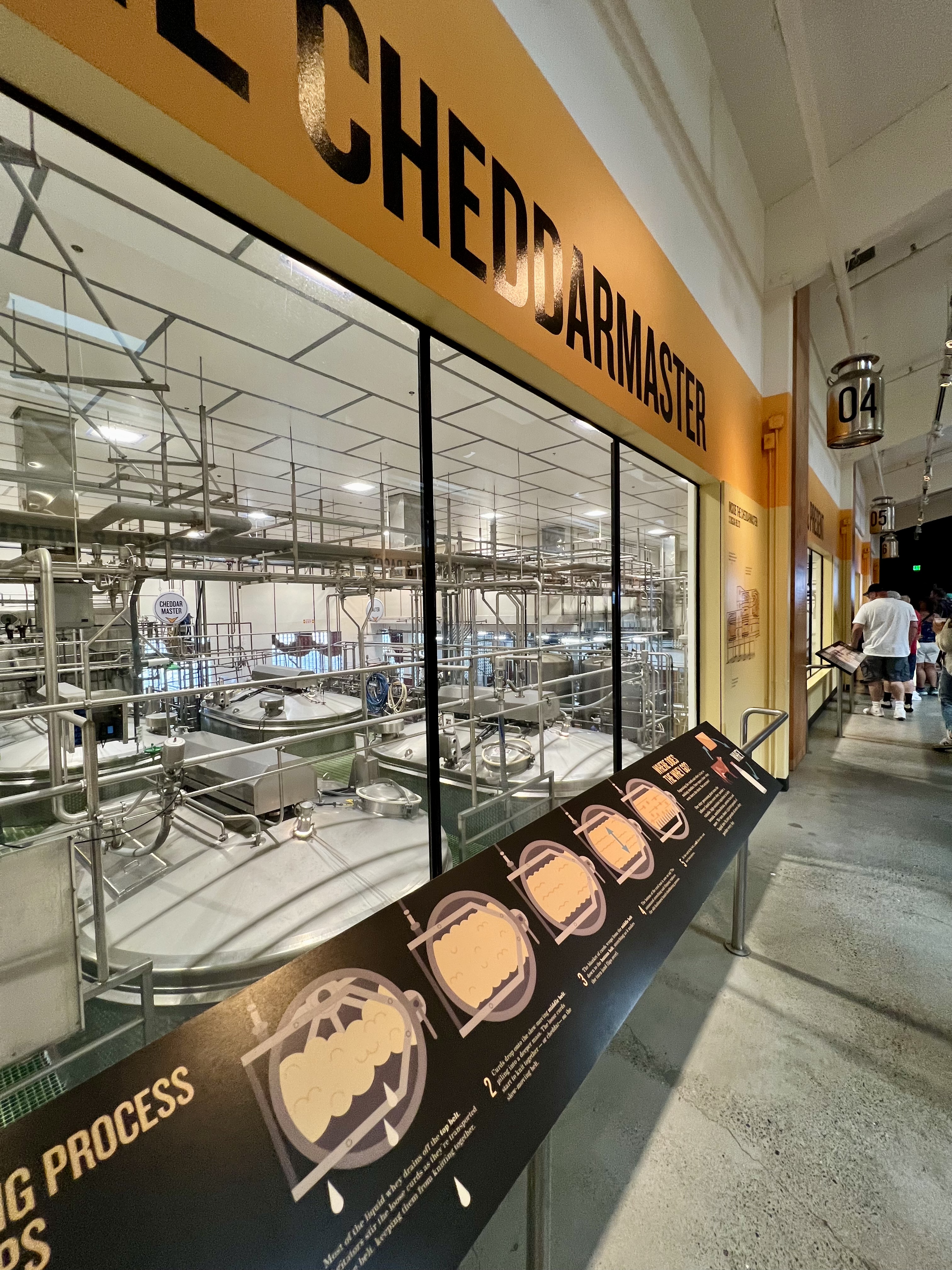 I opted for the Guided Tour + Tasting. For $15, our group guide, Levi, shared in-depth knowledge about the creamery and how its products are made. We traveled through the viewing gallery and watched the assembly line hard at work. The tour concluded with a specialty cheese tasting of aged cheddars from the Maker’s Reserve collection.