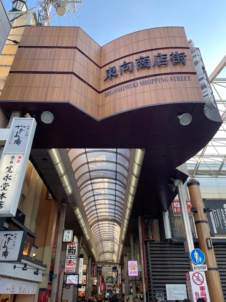 Linked to the Kintetsu-Nara Station is Higashimuki Shopping Street. This covered shopping arcade is packed with over 70 eateries, retailers and souvenir shops. Dining ranges from high-end Japanese cuisine to budget-friendly options like McDonald’s. With everything from law offices and banks to jewelry stores and eyeglass emporiums, this shopping center has it all.
