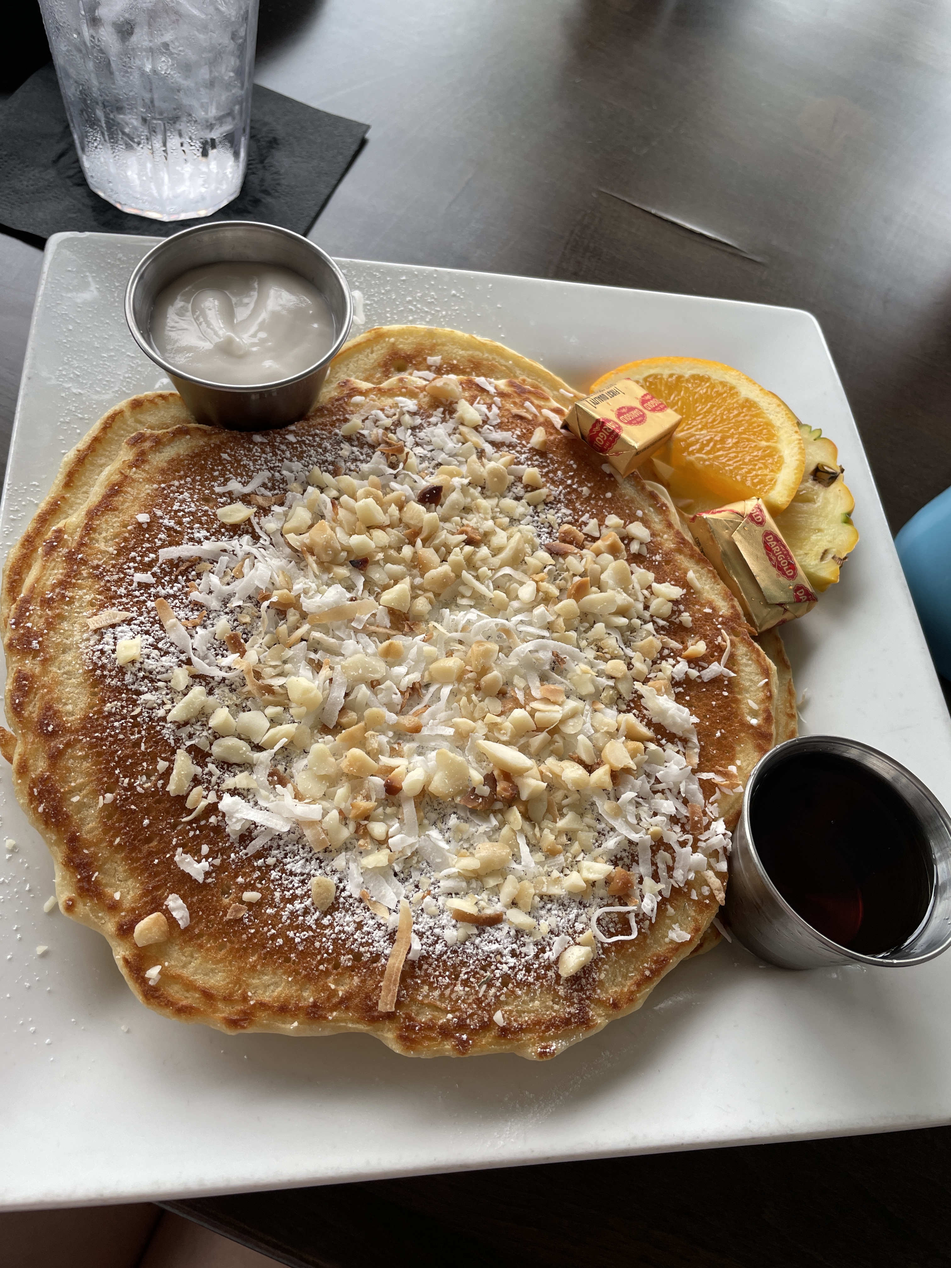 Papa Kona Restaurant & Bar overlooks Oneo Bay at the end of Waterfront Row, the perfect place to enjoy one of the best craft cocktails in Kona. Offering live music and sunset views, Papa Kona transforms from brunch bliss to evening euphoria. For brunch, I indulged in island style pancakes served with coconut syrup, butter, macadamia nuts and toasted coconut.